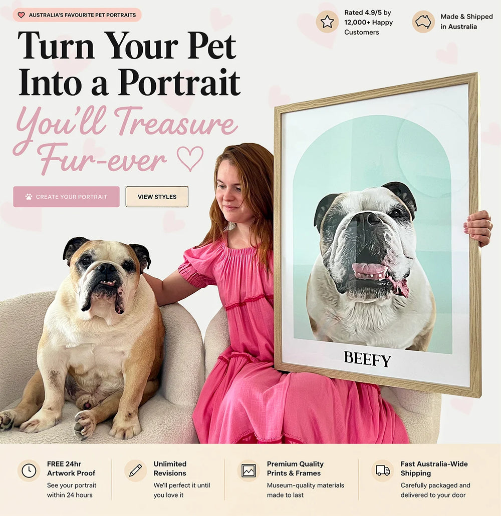 Custom Pet Portraits from Your Photo Printed & Framed in Australia