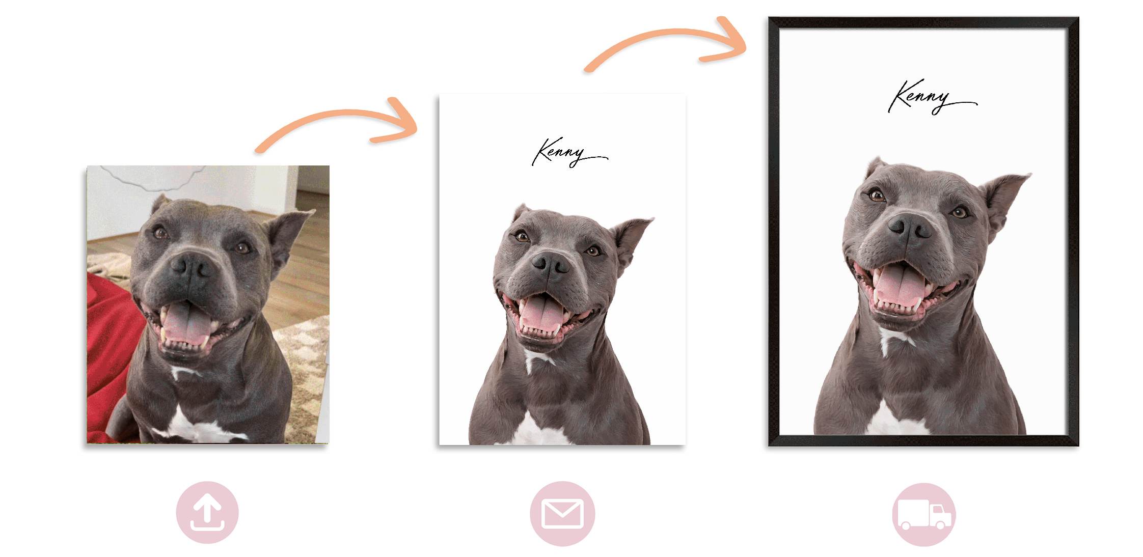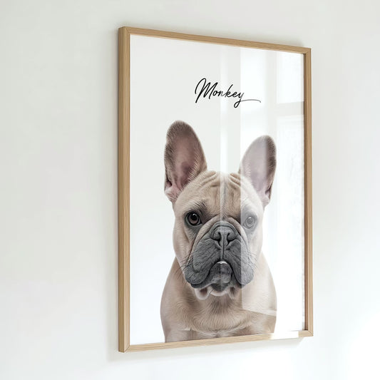 1. Choose your style, size, and frame colour, then upload your pet photo(s).