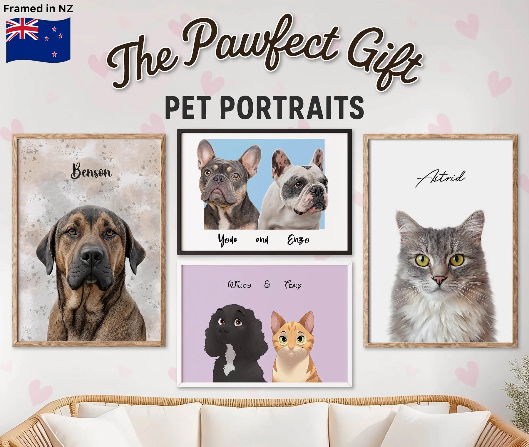Custom Pet Portraits from Your Photo Printed & Framed in New Zealand