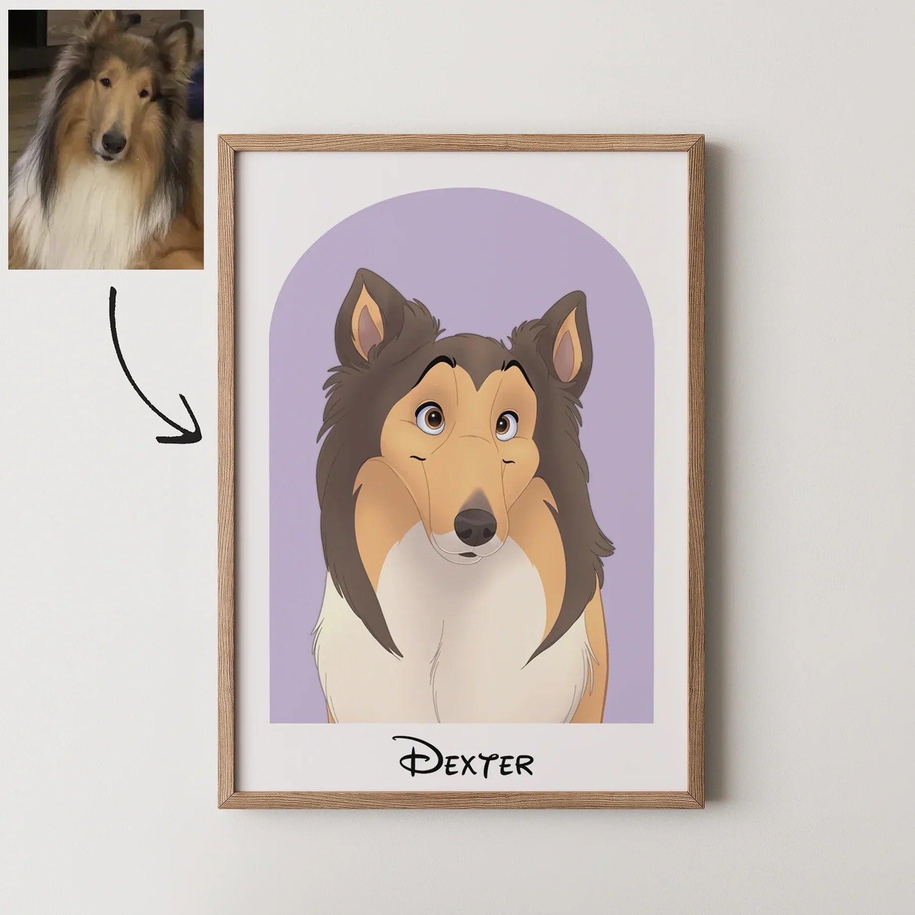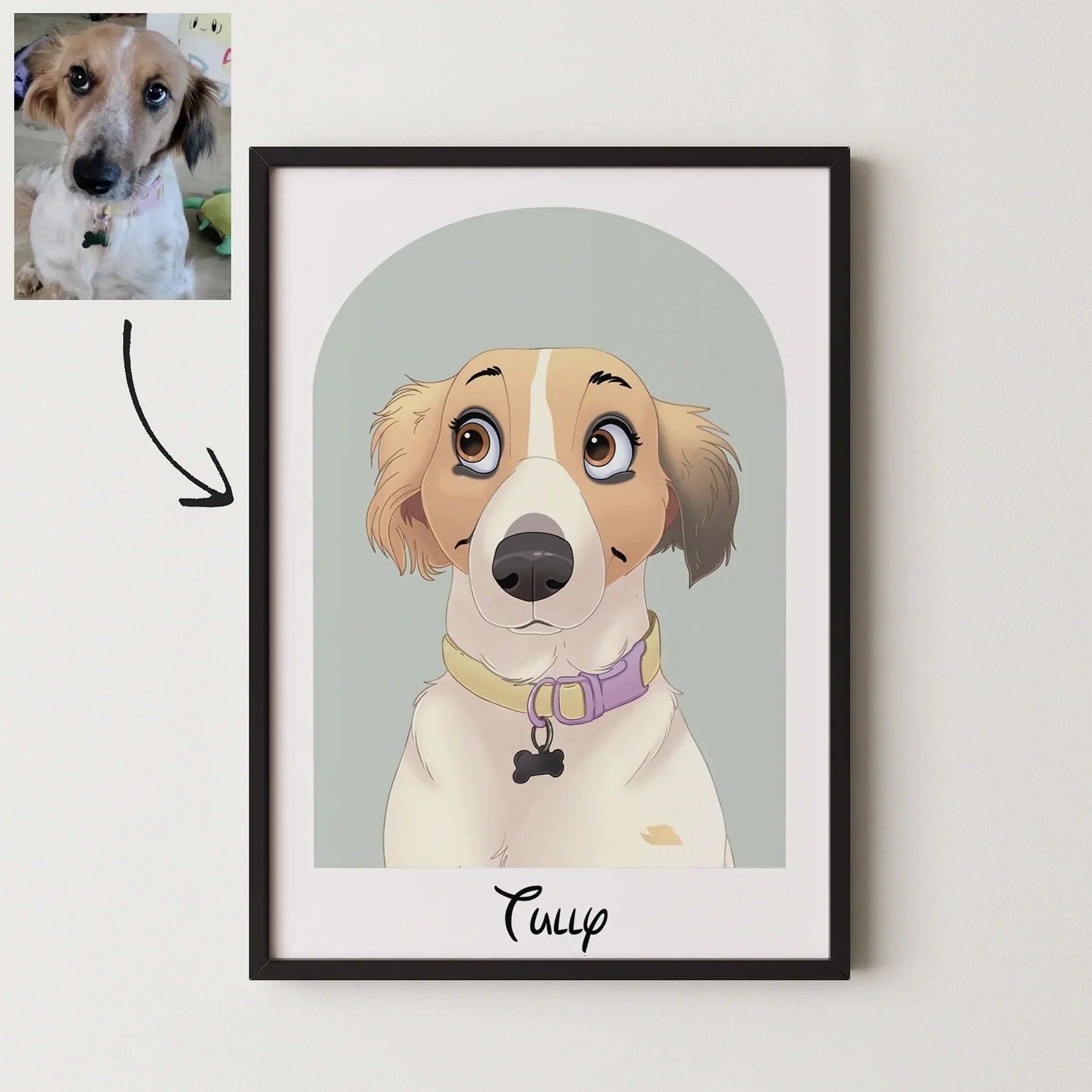 Turn your pet's photo into a beautiful, cartoon/disney style portrait – professionally printed and framed, or emailed as a high-resolution digital file. Perfect as a heartfelt gift or a lasting tribute to your furry friend.